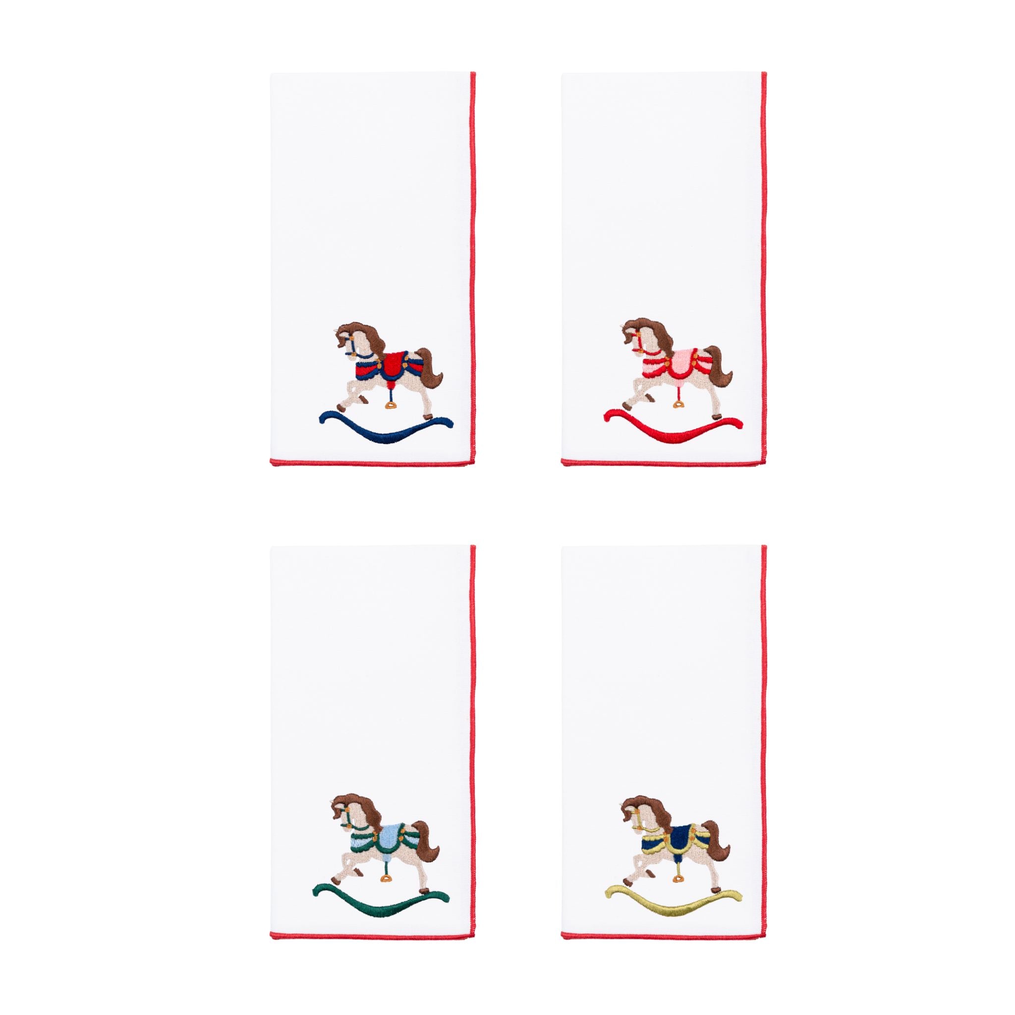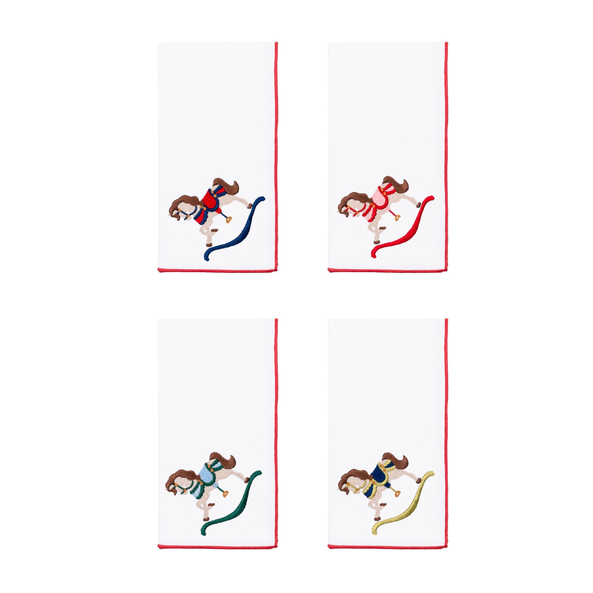 Serviettes Nazaré blanches brodées de chevaux